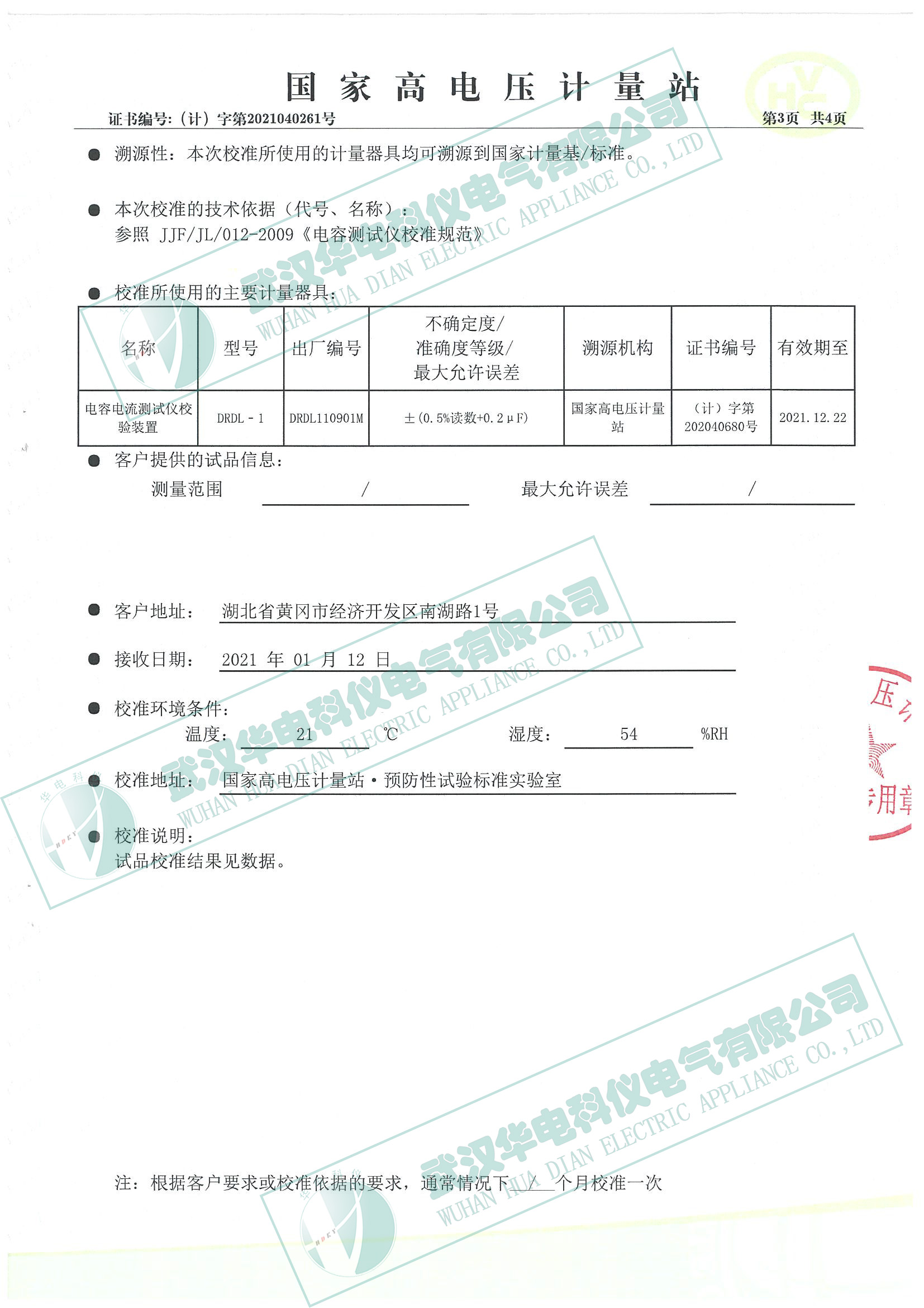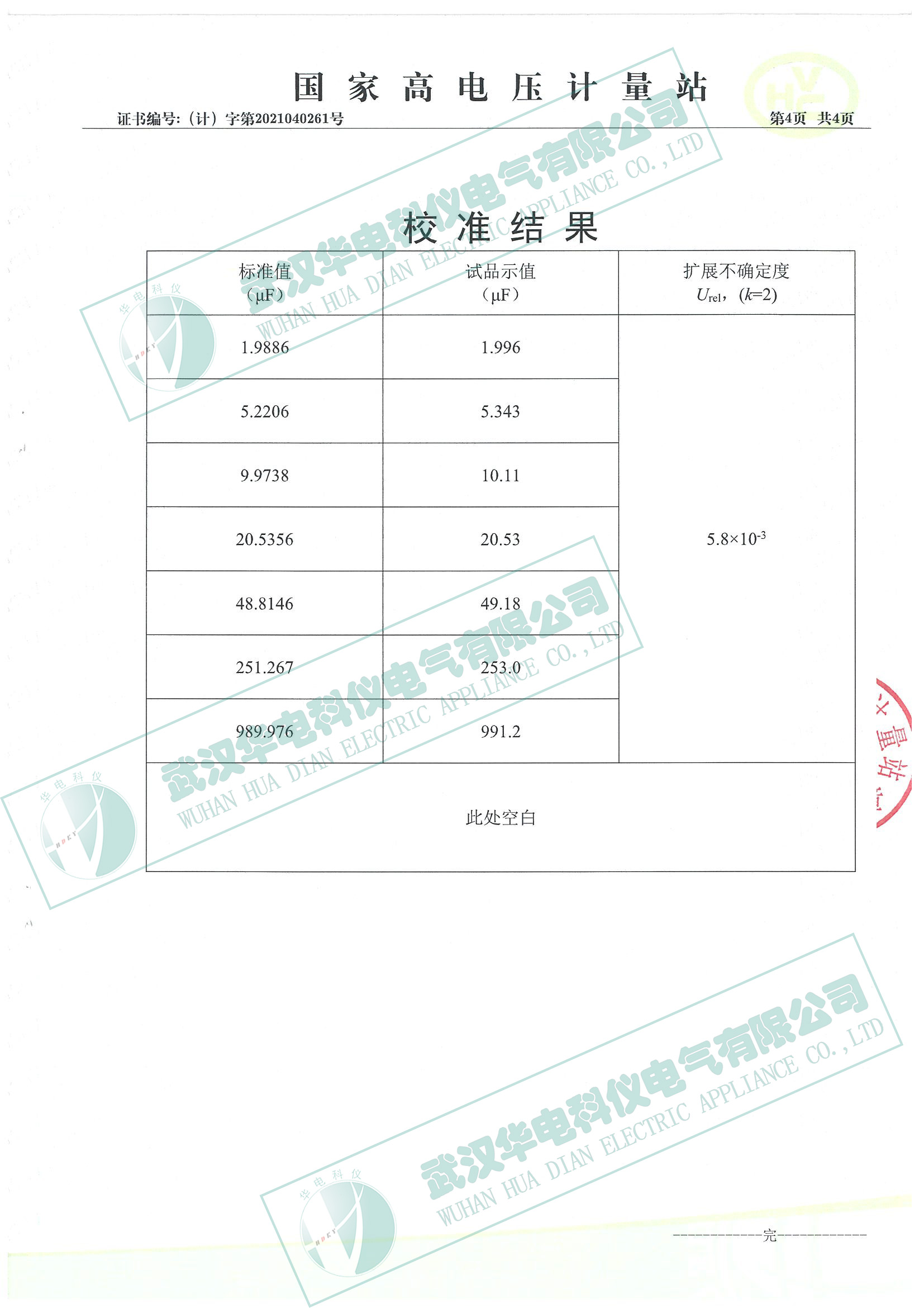 校準(zhǔn)證書