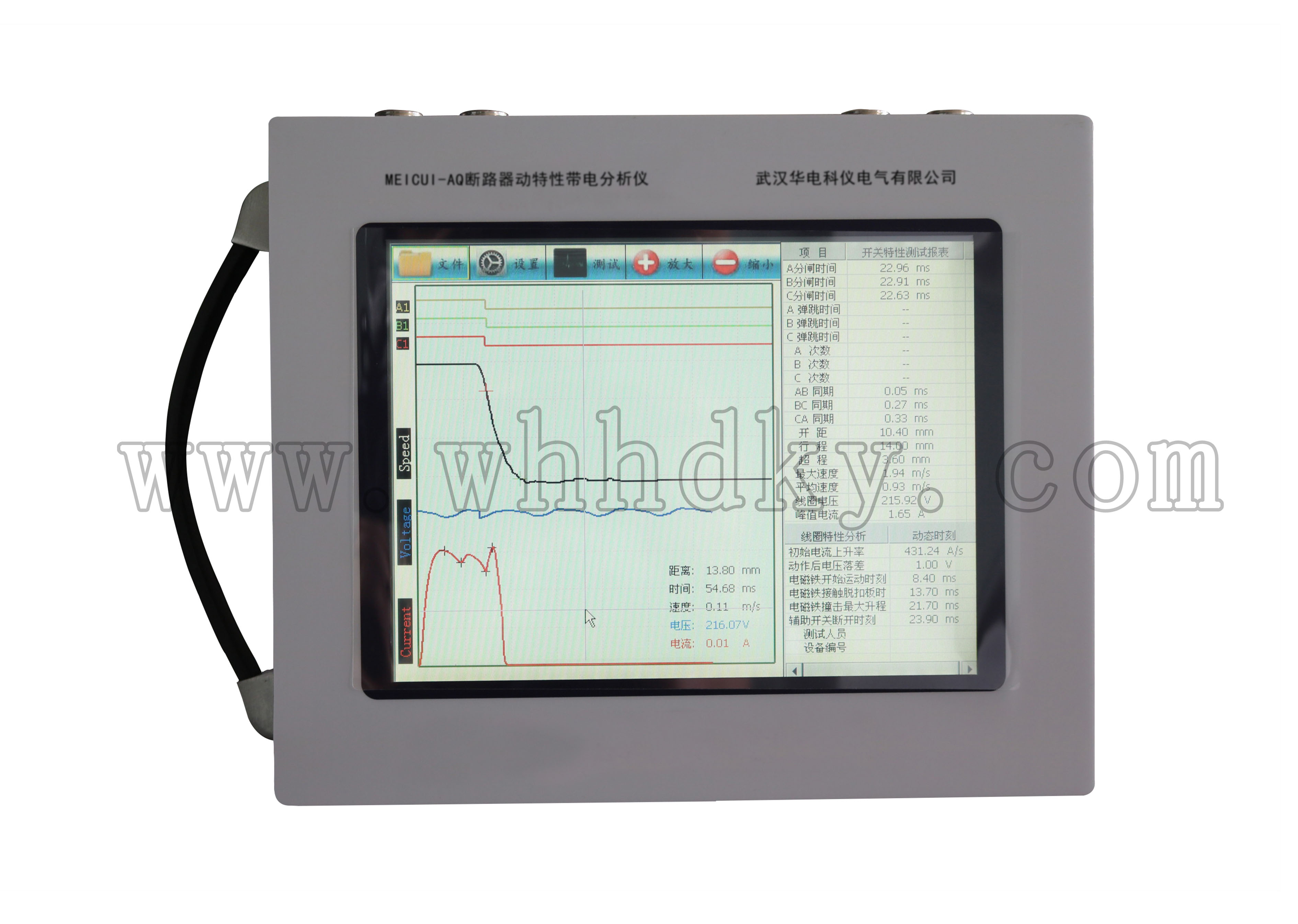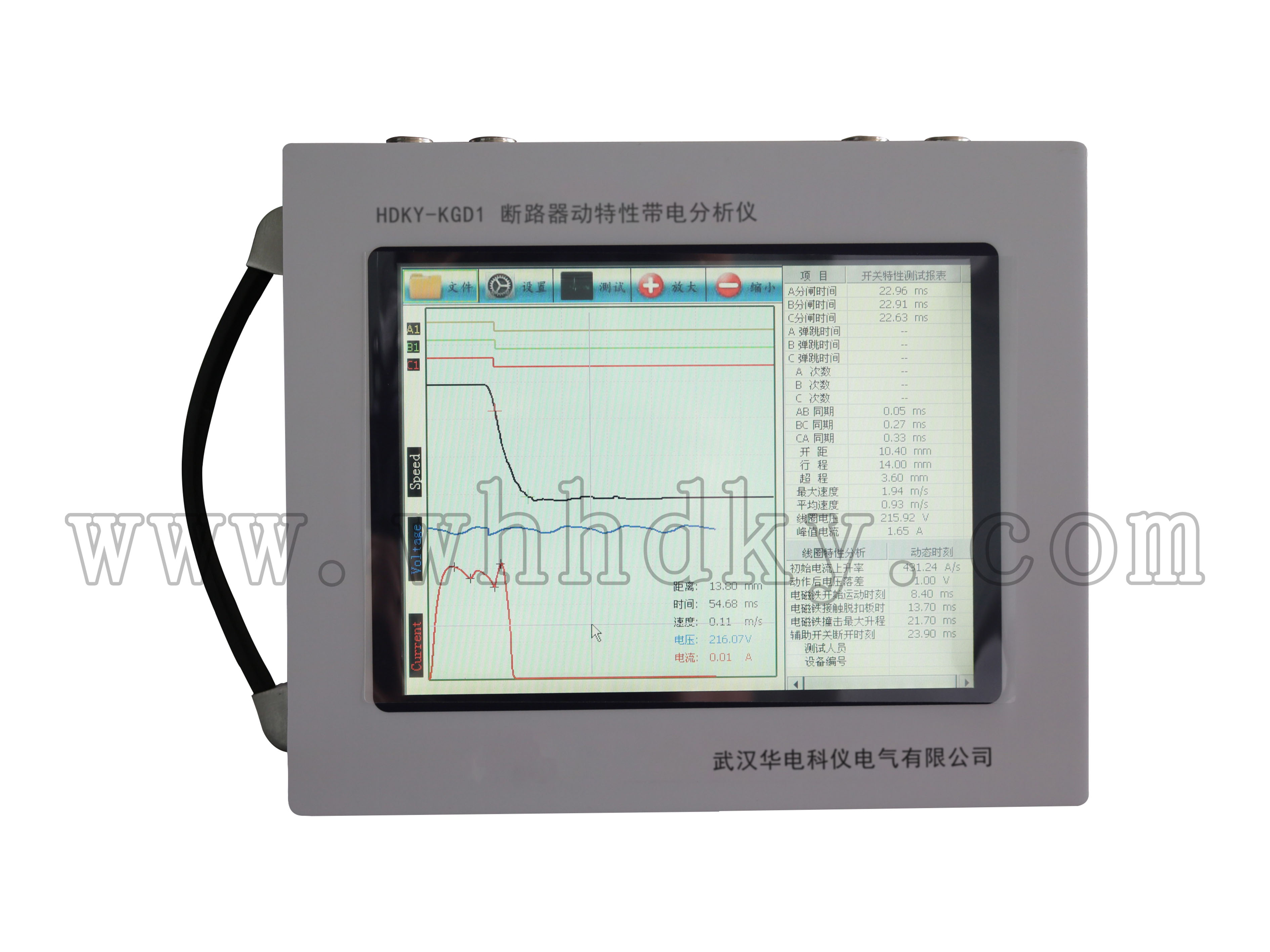 設(shè)備名稱:斷路器動特性帶電分析儀 型 號:HDKY-KGD1 數(shù) 量:1臺套 生產(chǎn)廠家:武漢華電科儀電氣有限公司