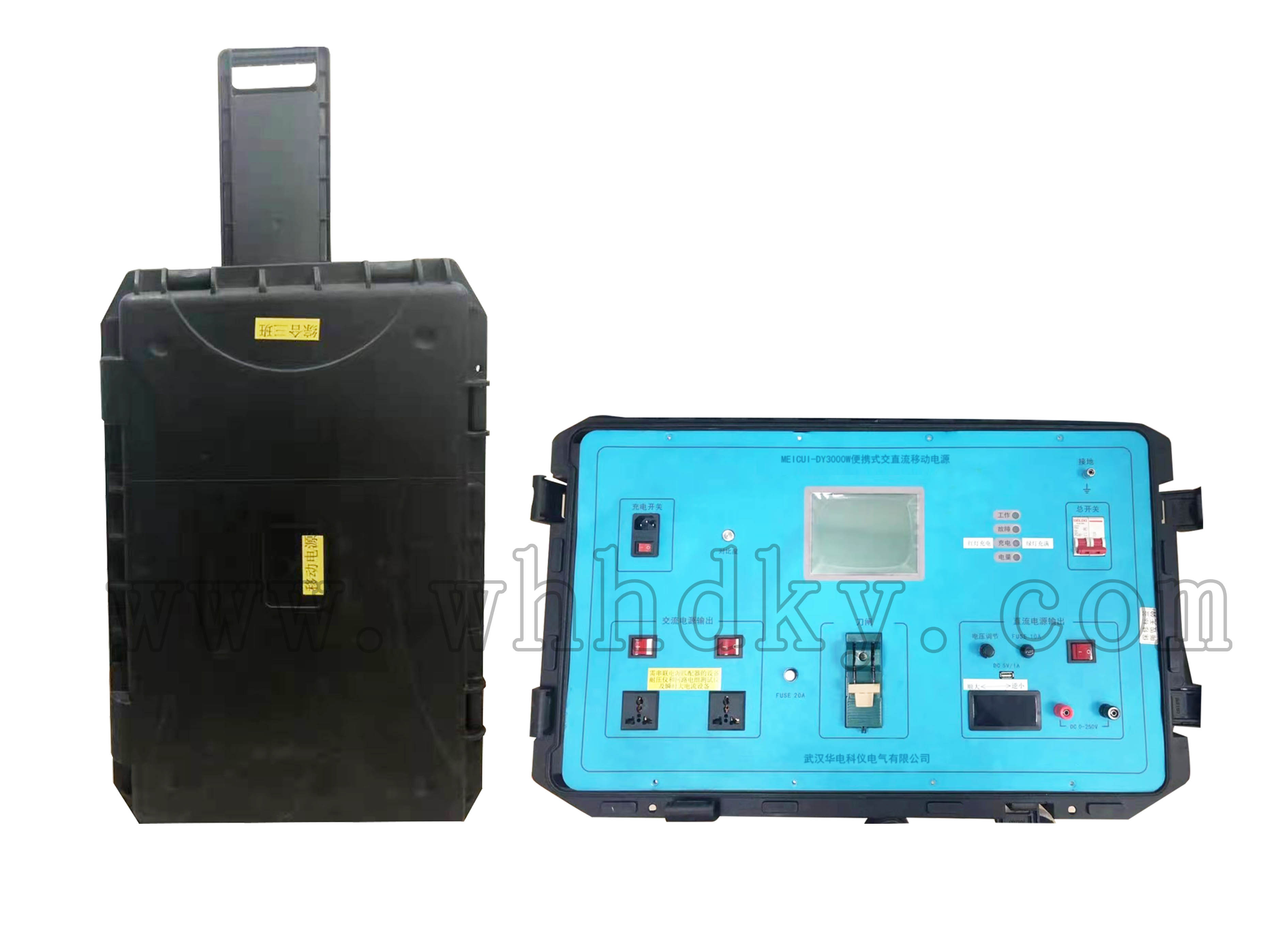 設(shè)備名稱:便攜式交直流移動電源 型 號:MEICUI-DY3000W 數(shù) 量:1臺套 生產(chǎn)廠家:武漢華電科儀電氣有限公司